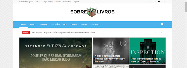 Enquanto os outros dois sites! Ambos não tem no site falando, mas o Sobre Livros é um site literário onde mostram opiniões sobre obras e também de adaptações que conhecemos ou não. O Omelete por sua parte é um site variado e nele encontramos de tudo.